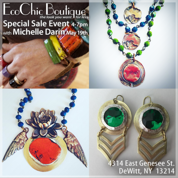 Save the date! Michelle DaRin will be at EcoChic on May 19th from 4-7 with a great selection of her unique pieces. Grab a friend and join us for a glass of wine and enjoy discounts throughout the...